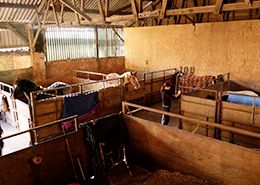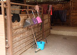 We also have a tea room, toilets and a shower. The tea room also has a pull-out bed so you can stay overnight if your horse is ill. People come to their horses from early morning right through to late evening. The floodlit manège can be used until 10pm.
